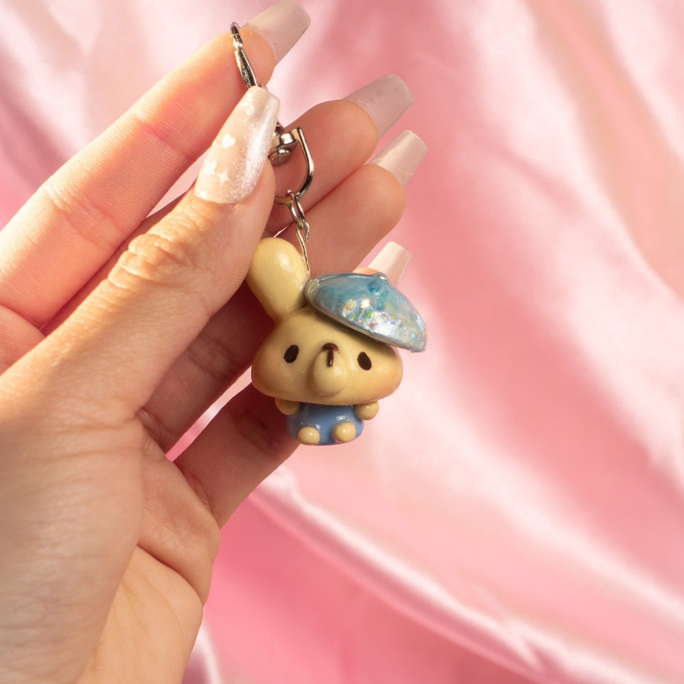 Meet BON, the bubbly twin brother of BIN! This adorable cream-colored rabbit keychain is all heart and charm. With a love for blue and a passion for swimming, BON brings cheerful energy wherever you go. Perfect for cheesecake lovers and adventure seekers alike, this caring companion clips onto your bag or keys as a daily reminder to embrace joy and kindness. A delightful accessory for anyone who appreciates whimsical character charm.