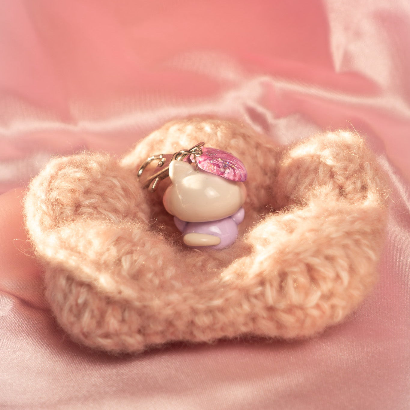 Introducing EVY—a sparkly purple keychain inspired by the quiet joy of creative hands at work. Perfect for crochet enthusiasts, sewing lovers, and anyone who finds peace in handmade crafts, this playful accessory captures EVY's calm spirit and love of all things shimmery. Keep your keys close and your creative energy closer with this delightful little charm that celebrates the magic of making something beautiful.